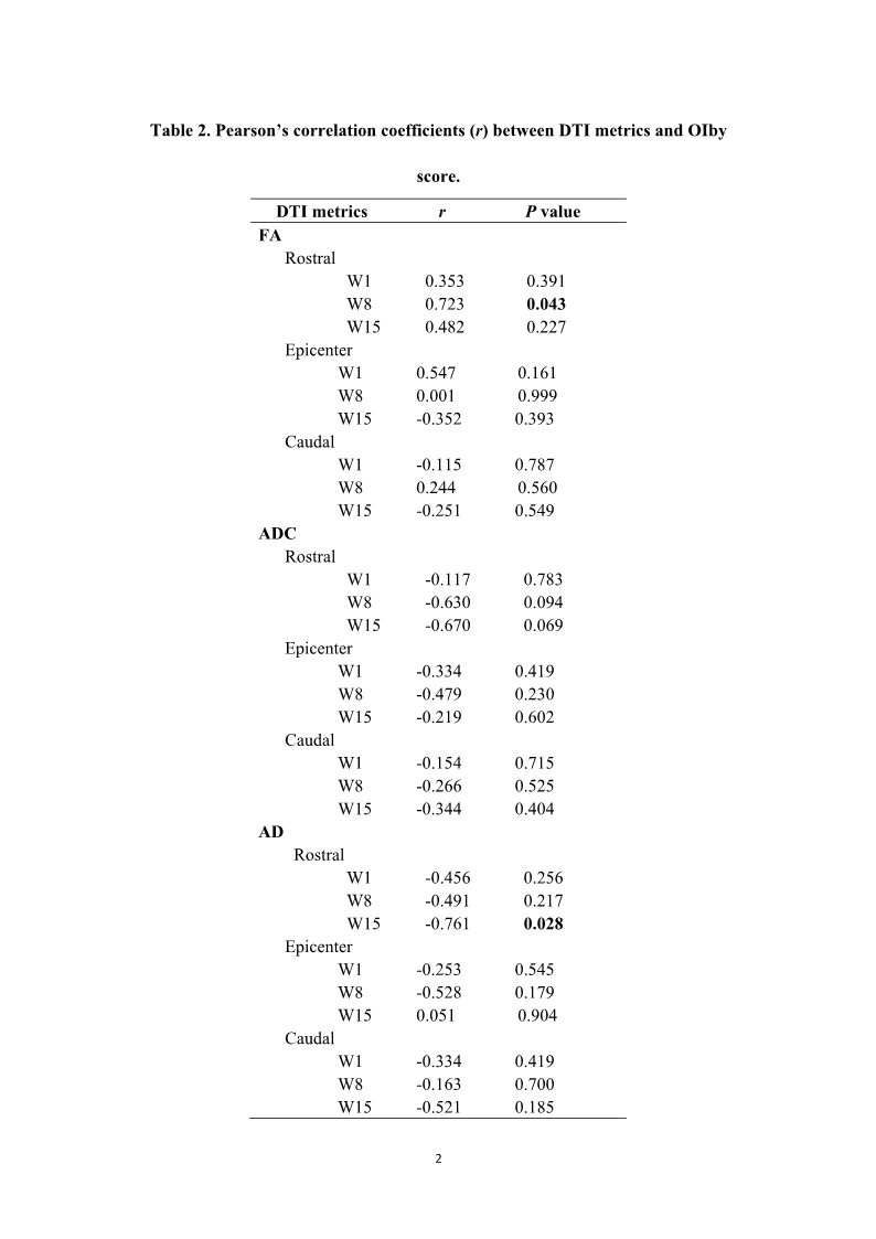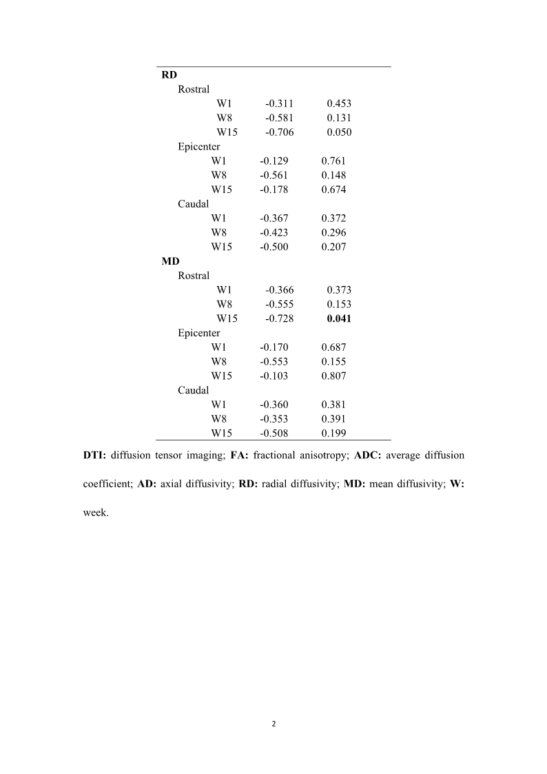 32、Patel SP, Smith TD, VanRooyen JL, et al. Serial Diffusion Tensor Imaging In Vivo Predicts Long-Term Functional Recovery and Histopathology in Rats following Different Severities of Spinal Cord Injury. J Neurotrauma 2016;33(10):917-28, doi:10.1089/neu.2015.4185Patel SP, Smith TD, VanRooyen JL, et al. Serial Diffusion Tensor Imaging In Vivo Predicts Long-Term Functional Recovery and Histopathology in Rats following Different Severities of Spinal Cord Injury. J Neurotrauma 2016;33(10):917-28, doi:10.1089/neu.2015.4185